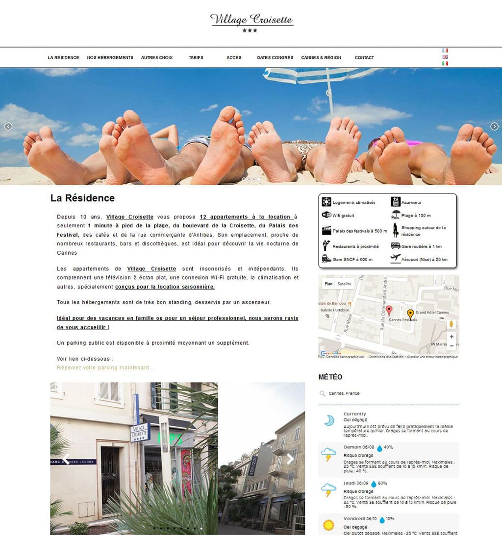 Site Internet développé par DSC CONSEIL pour la société Village Croisette située à Cannes (Alpes-Maritimes). Village Croisette propose des appartements de très bon standing à la location en plein centre de Cannes pour des vacances en famille ou pour un séjour...